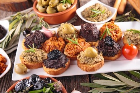 SPANISH STYLE TAPAS Exciting Spanish-style dishes, each with tons of flavor. We’ll make “crab” cakes, tapenade, roasted vegetable & tofu cheese crostini, tortilla espanola, mushrooms with garlic, and garbanzo bean & spinach stew.